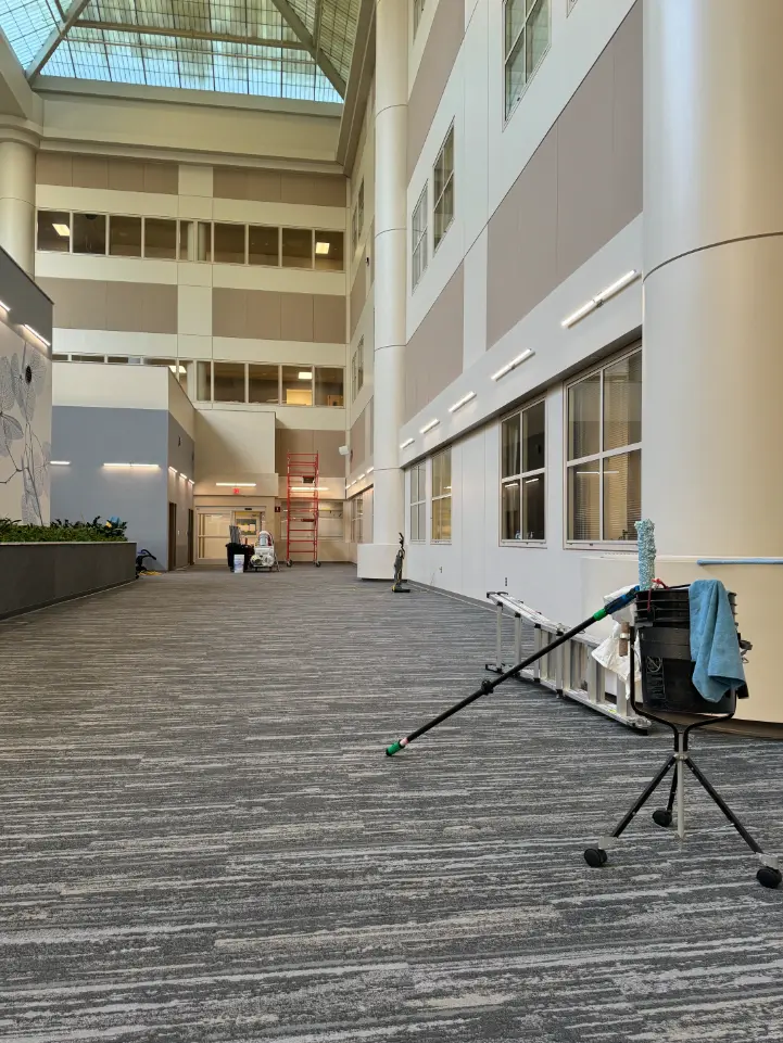 Once the above has been taken care of, final tasks for interior construction cleaning generally include strip washing windows, polishing, or removing residues from brightwork, cleaning thresholds, vacuuming with HEPA vacuums, and touch up cleaning of polished or difficult surfaces. We even have advanced air filtration, and VOC scrubbing technology for sensitive tenants, or people prone to allergies.